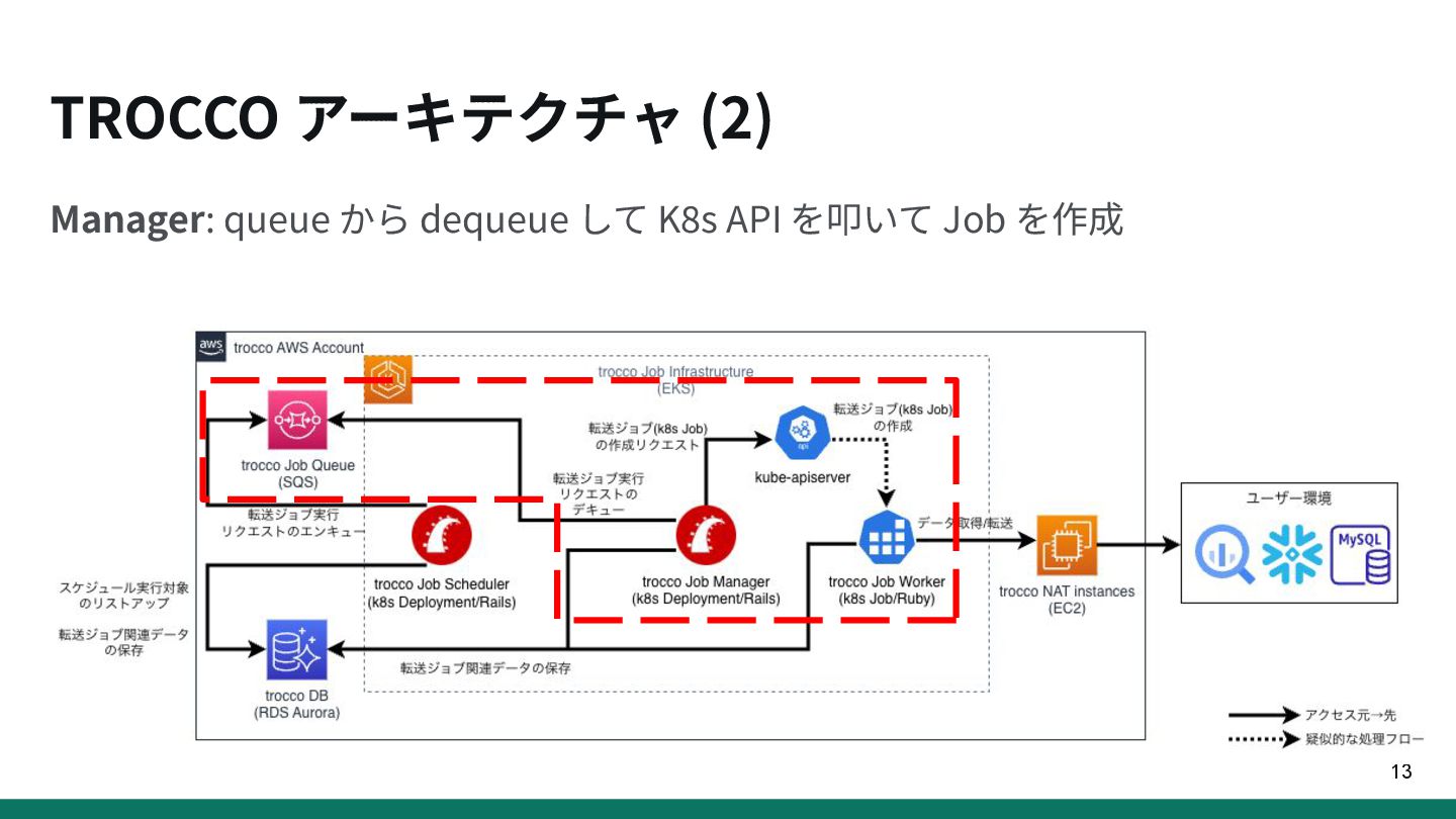 13 13 TROCCO アーキテクチャ (2) Manager: queue から dequeue して