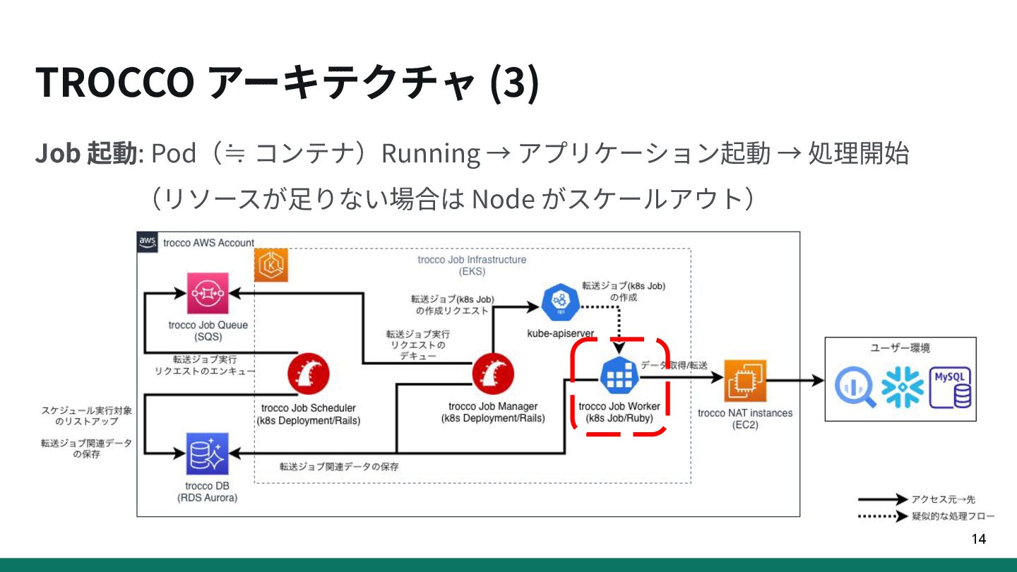 14 14 TROCCO アーキテクチャ (3) Job 起動: Pod(≒ コンテナ)Running →
