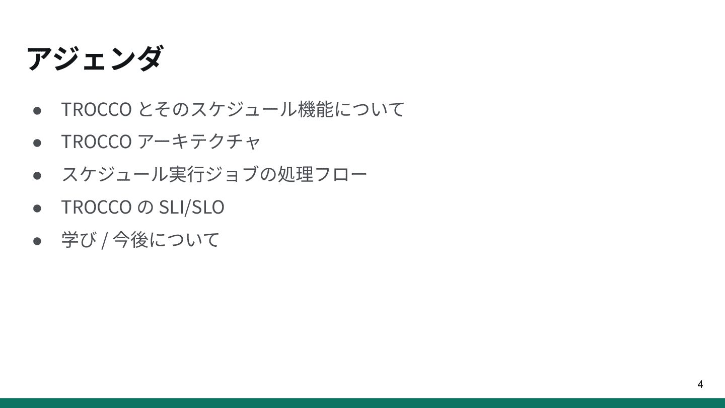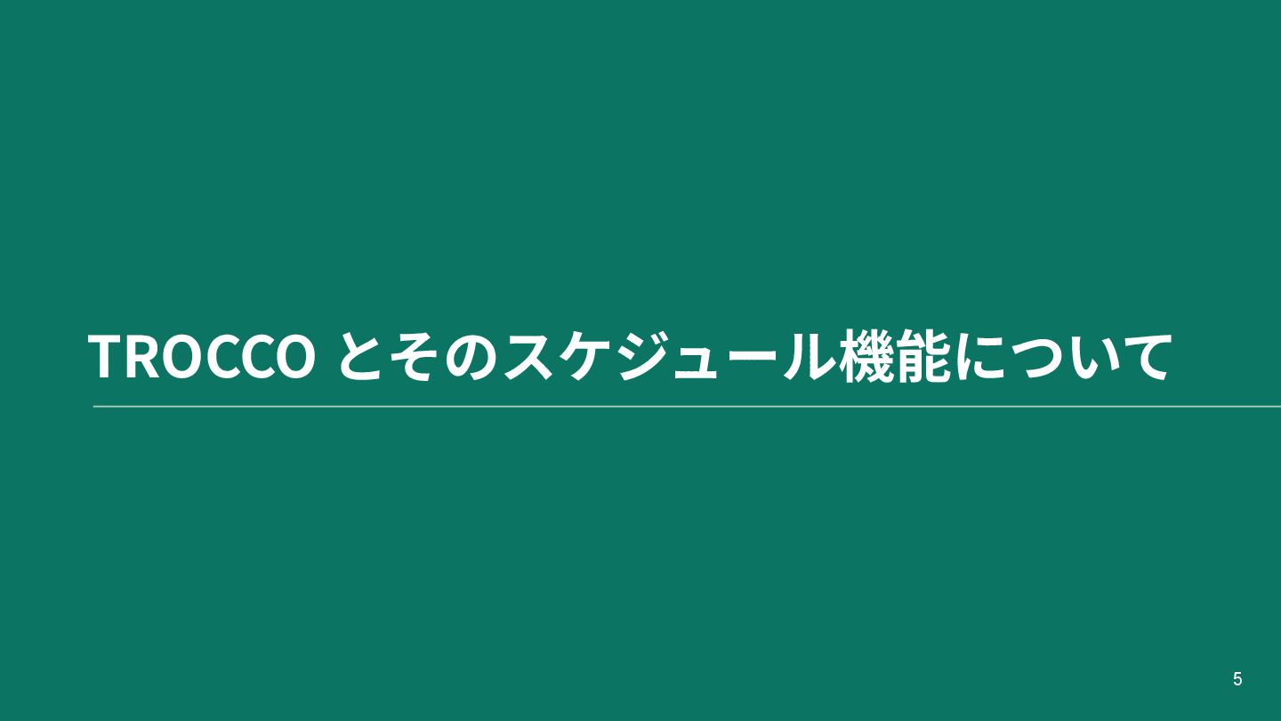 4 4 アジェンダ • TROCCO とそのスケジュール機能について • TROCCO アーキテクチャ •