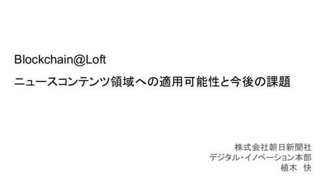 Blockchain@Loft ニュースコンテンツ領域への適用可能性と今後の課題 株式会社朝日新聞社 デジタル・イノベーション本部 植木 快