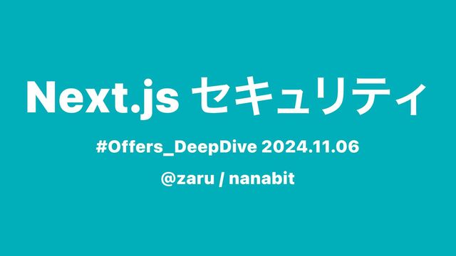 Next.js セキュリティ #Offers_DeepDive 2024.11.06 @zaru / nanabit