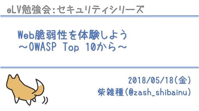 0.自己紹介 1.目的とゴール 2.はじめに 2.1.現状把握 2.2.OWASP Top 10説明 3.説明&ハンズオン 4.まとめ eLV勉強会