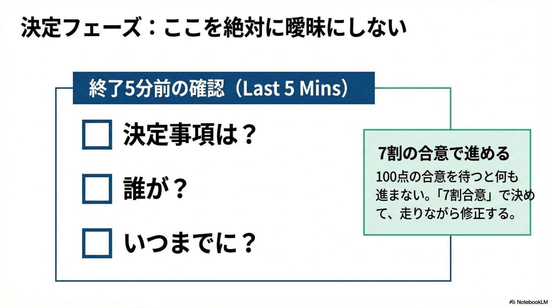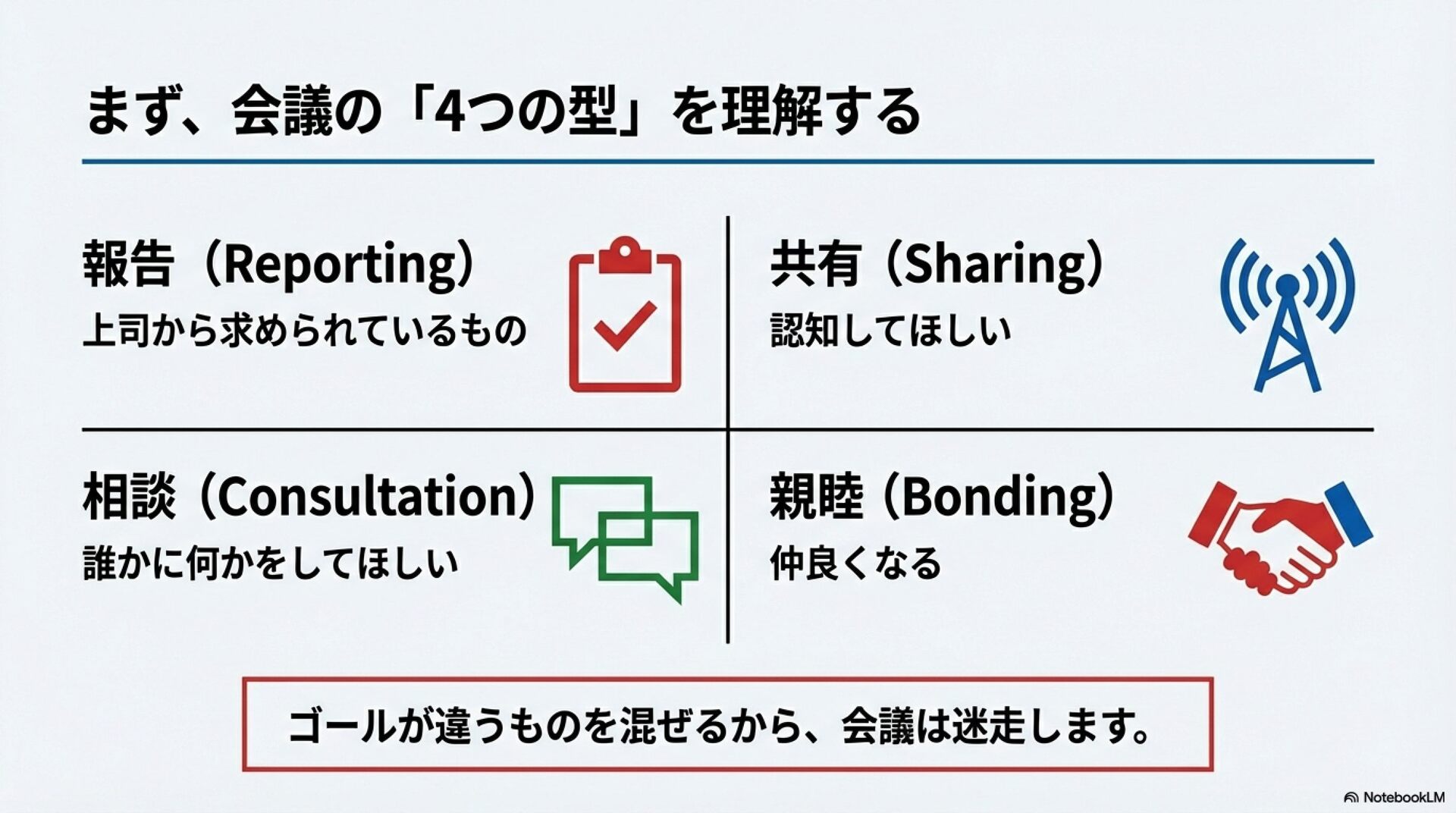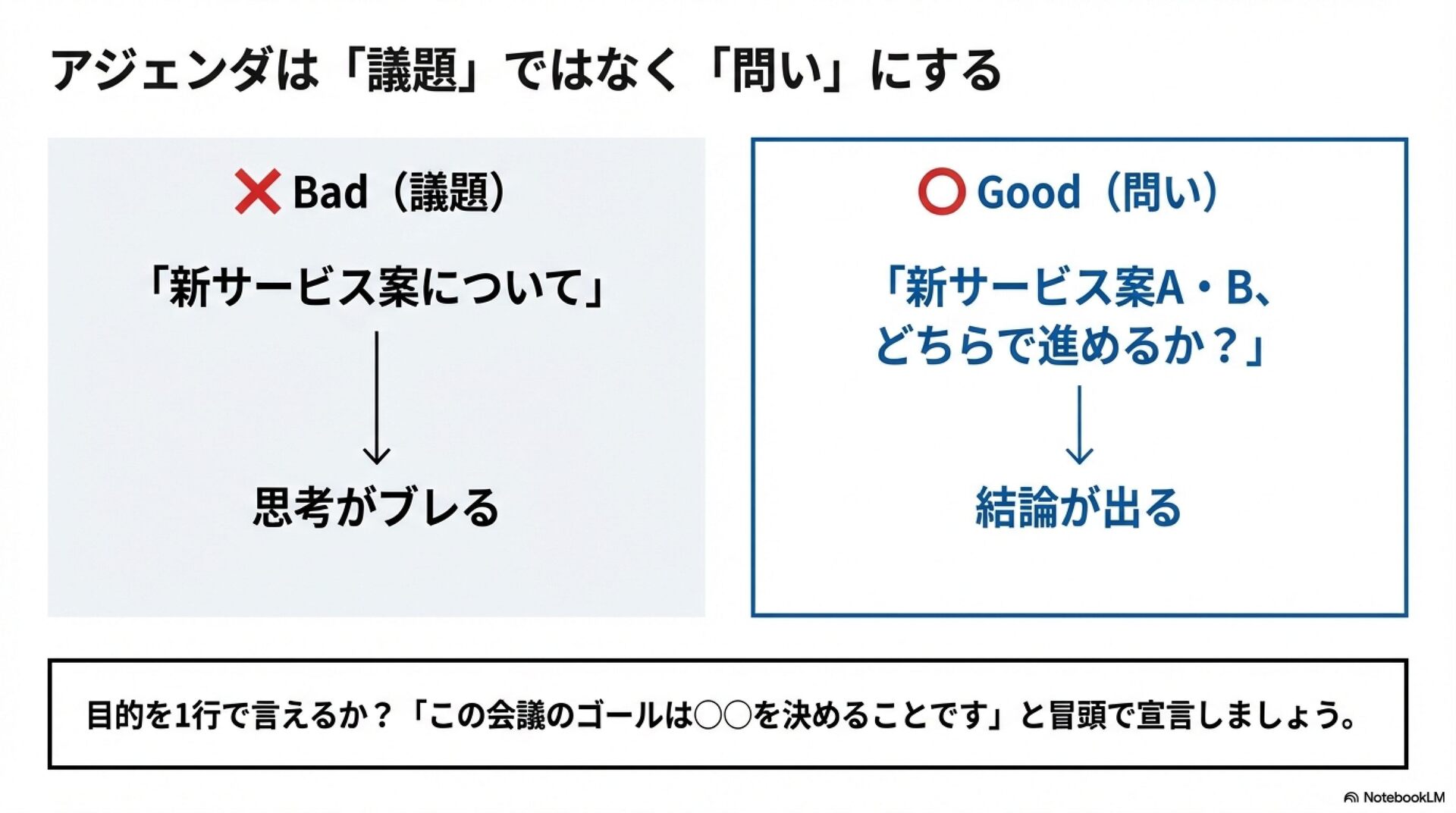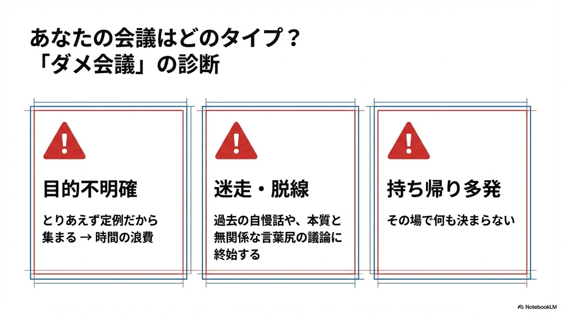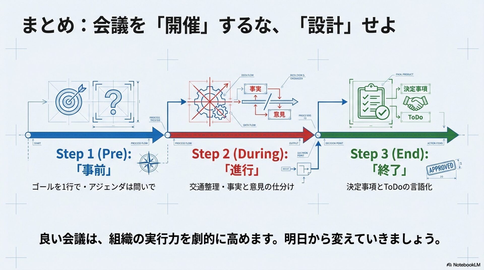 時間は貴重なので、よい会議ができるようスキルアップを図りましょう!