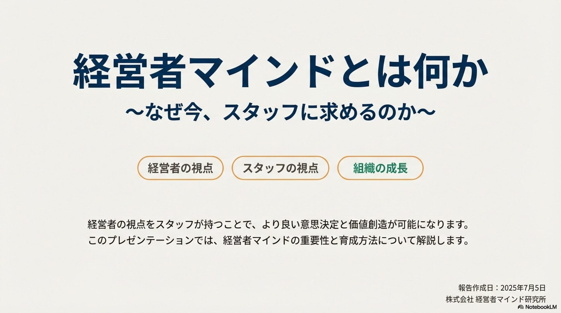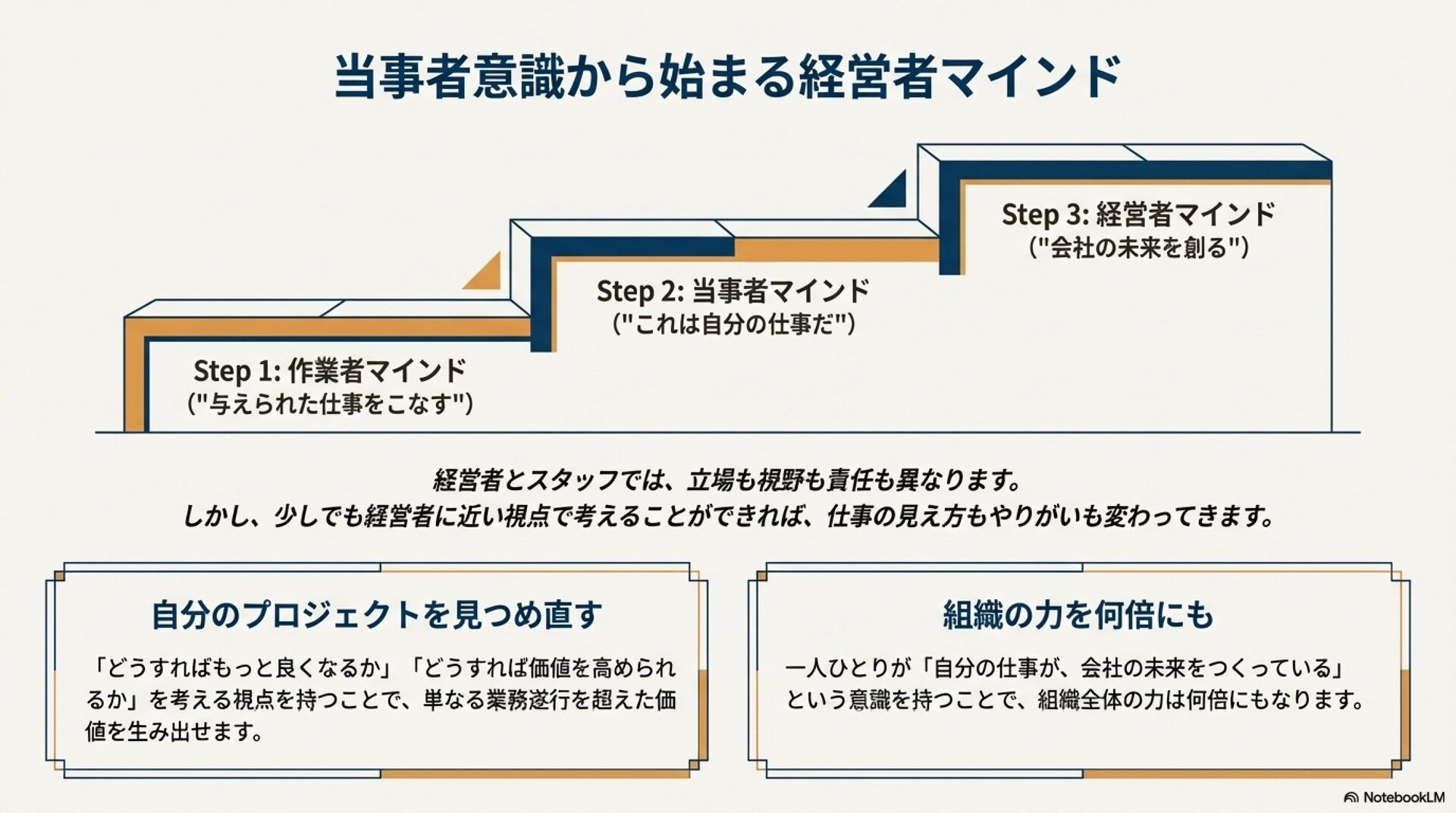 経営者になって改めて、経営者マインドをスタッフと共有する必要性を理解しました。