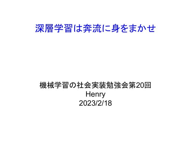 深層学習は奔流に身をまかせ 機械学習の社会実装勉強会第20回 Henry 2023/2/18
