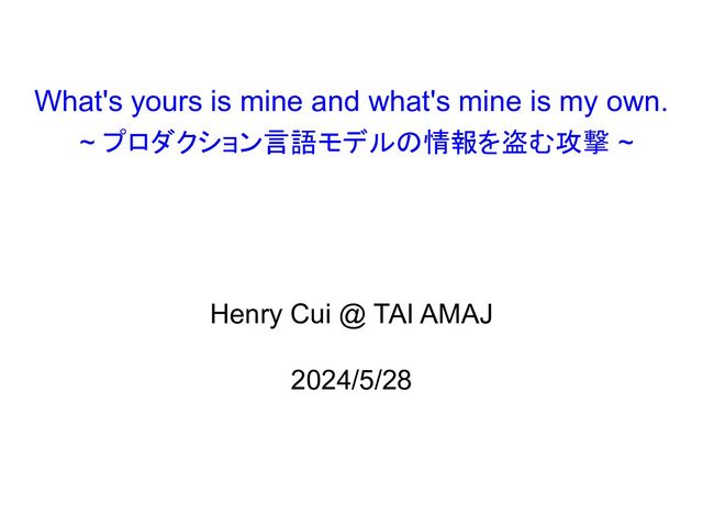 K Log Probabilities • Softmaxをかける前に足すbiasベクトルを指定できる ▪ 考え方 • Top K個の情報が得られるなら、 K個ごとの大きなbiasを足して推論するのを繰り返せば、すべての 情報が得られる ▪ 例えば、Top 5の場合 • logitsではなくて、logprobが出力されるので、Bを引くだけでは復元できない ▪ ▪ 対応法:差分計算 • Top Tokenがわかれば、毎回Top TokenとK - 1個の位置に大きなbiasを足して、差分を 計算できる。Softmaxはadditive shiftsに不変なのでOK。 • 極端なケース ▪ Top-1しか見れなくて、かつ biasの範囲を厳しく制限する ▪ biasがあり・なしの2回のクエリー結果を比較することで、差分を計算することが可能 ▪ 実験的には数値的に不安定 • OpenAIに攻撃を共有したのち、 logit-biasを考慮したlogprobsの出力を中止した 9