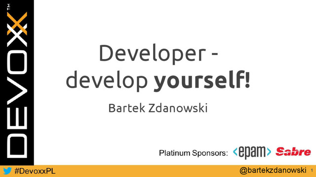 I invite you for a story about things you can do as developers to keep developing yourself. I will tell you about workshops, hackathons, code review techniques, blog writing, attending and speaking at conferences, sharing knowledge and a lot more. All those activities support learning new things, experimenting and having fun. Without that we have only our day-to-day job that can be tough or boring. Everything comes from my personal experience. I will show you examples with do’s and don’ts. I will share lot’s of tips how to introduce those techniques at your work.