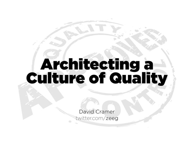 David Cramer twitter.com/zeeg Architecting a Culture of Quality
