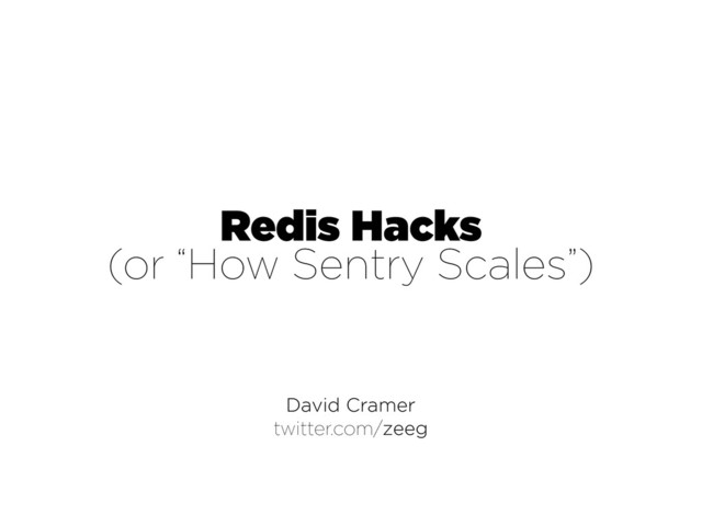 David Cramer twitter.com/zeeg Redis Hacks (or “How Sentry Scales”)