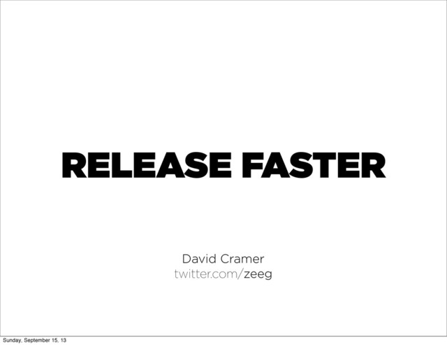 RELEASE FASTER David Cramer twitter.com/zeeg Sunday, September 15, 13