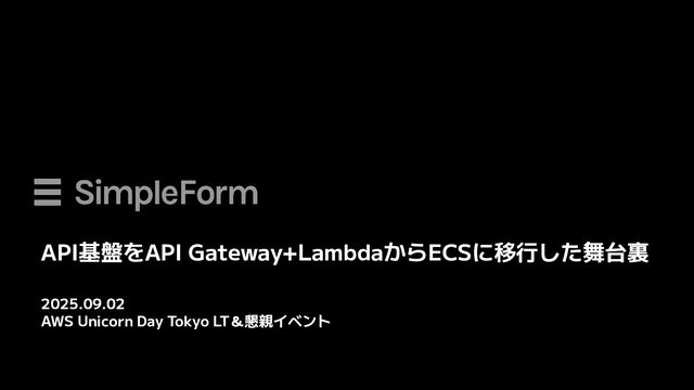 API基盤をAPI Gateway+LambdaからECSに移行した舞台裏 2025.09.02 AWS Unicorn Day Tokyo LT&懇親イベント
