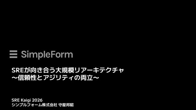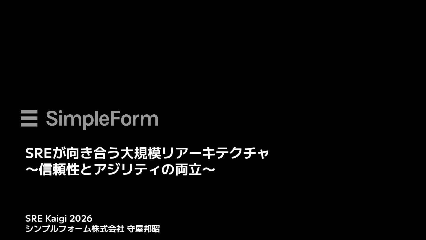 SREが向き合う大規模リアーキテクチャ 〜信頼性とアジリティの両立〜 SRE Kaigi 2026 シンプルフォーム株式会社 守屋邦昭