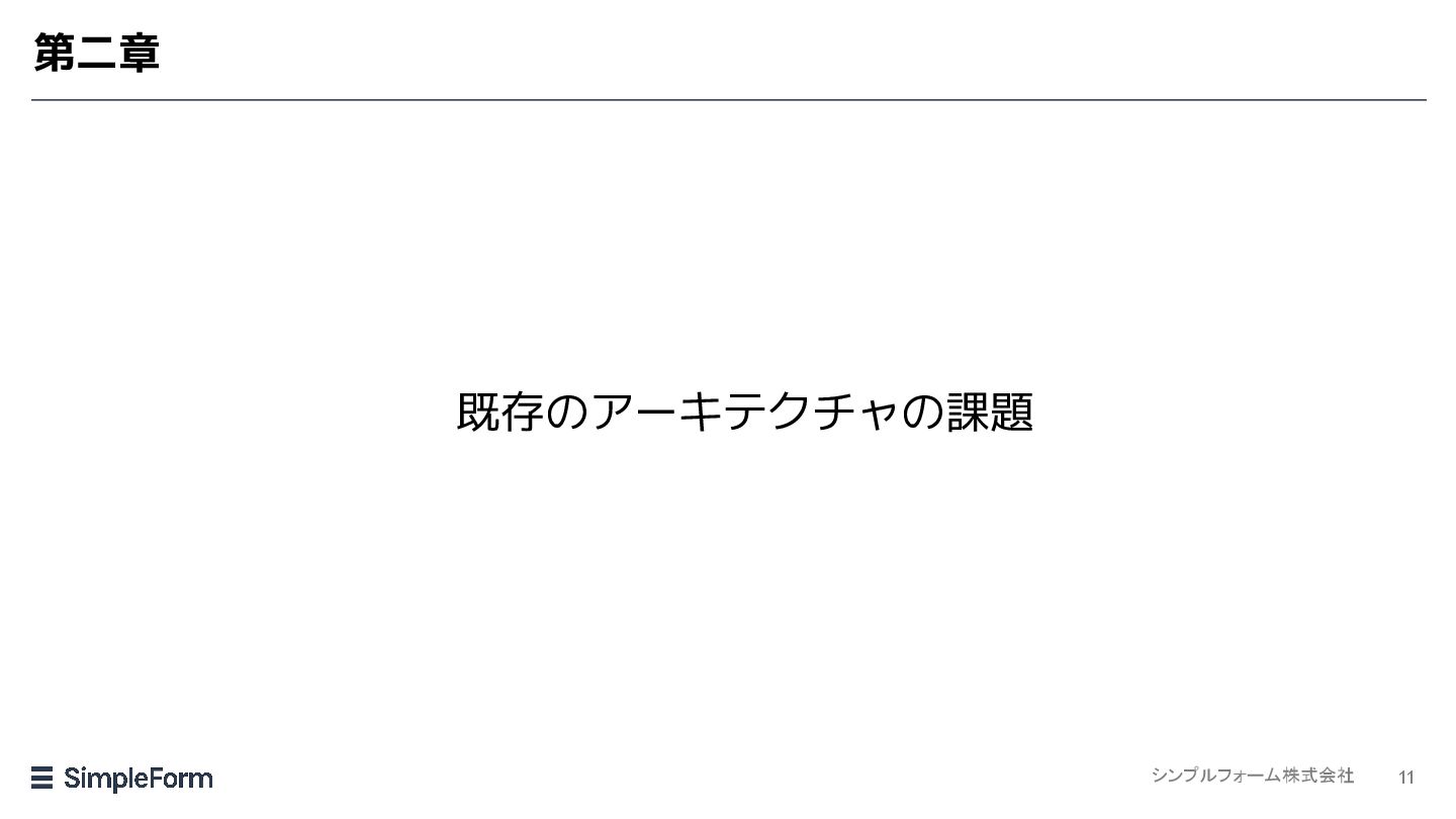 シンプルフォーム株式会社 第二章 11 既存のアーキテクチャの課題