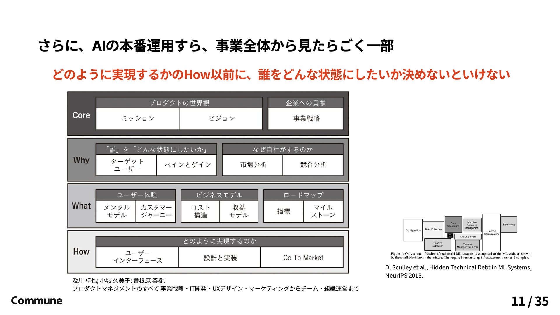 ML Systems, NeurIPS 2015. 11 / 35 及川 卓也; 小城 久美子; 曽根原 春樹. プロダクトマネジメントのすべて 事業戦略・IT開発・UXデザイン・マーケティングからチーム・組織運営まで