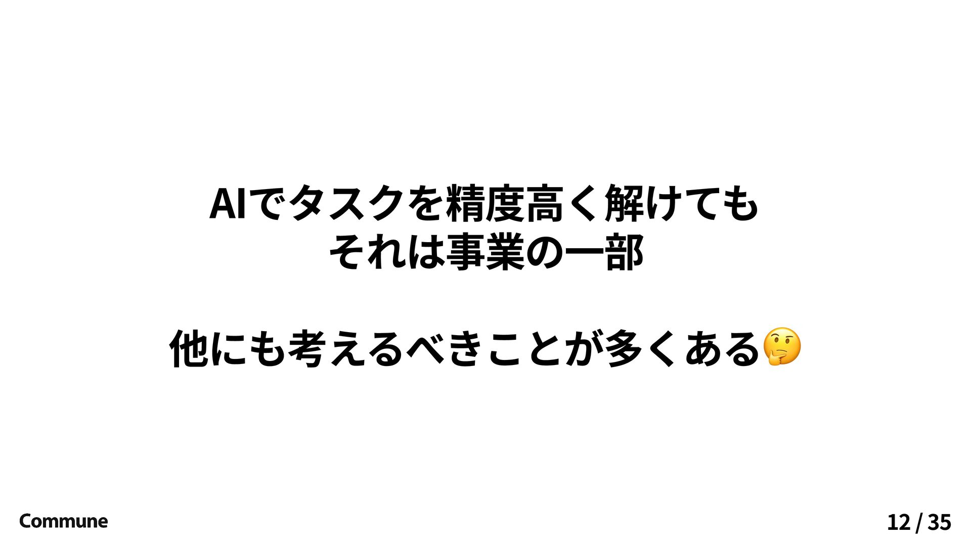 AIでタスクを精度高く解けても それは事業の一部 他にも考えるべきことが多くある 12 / 35