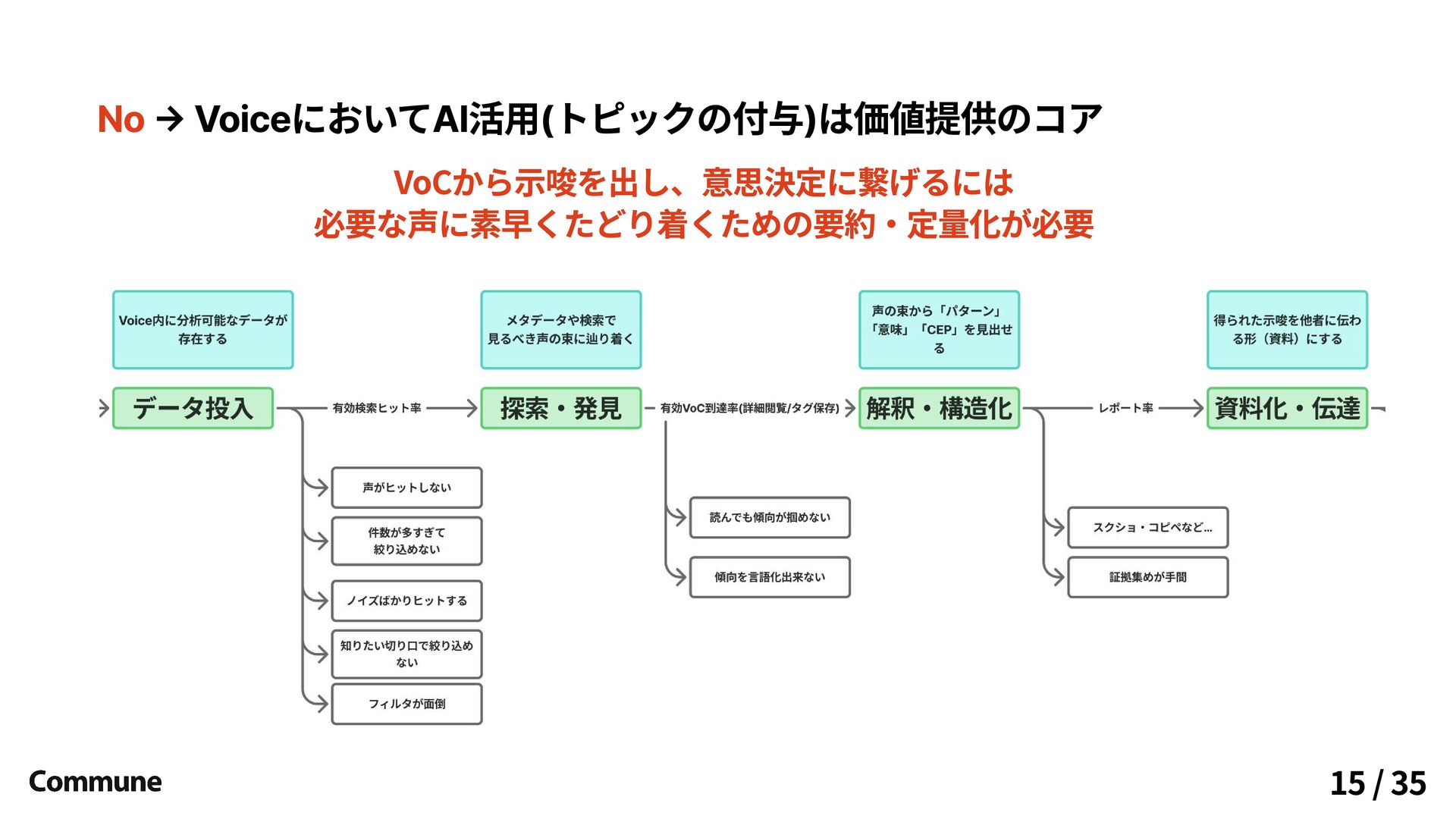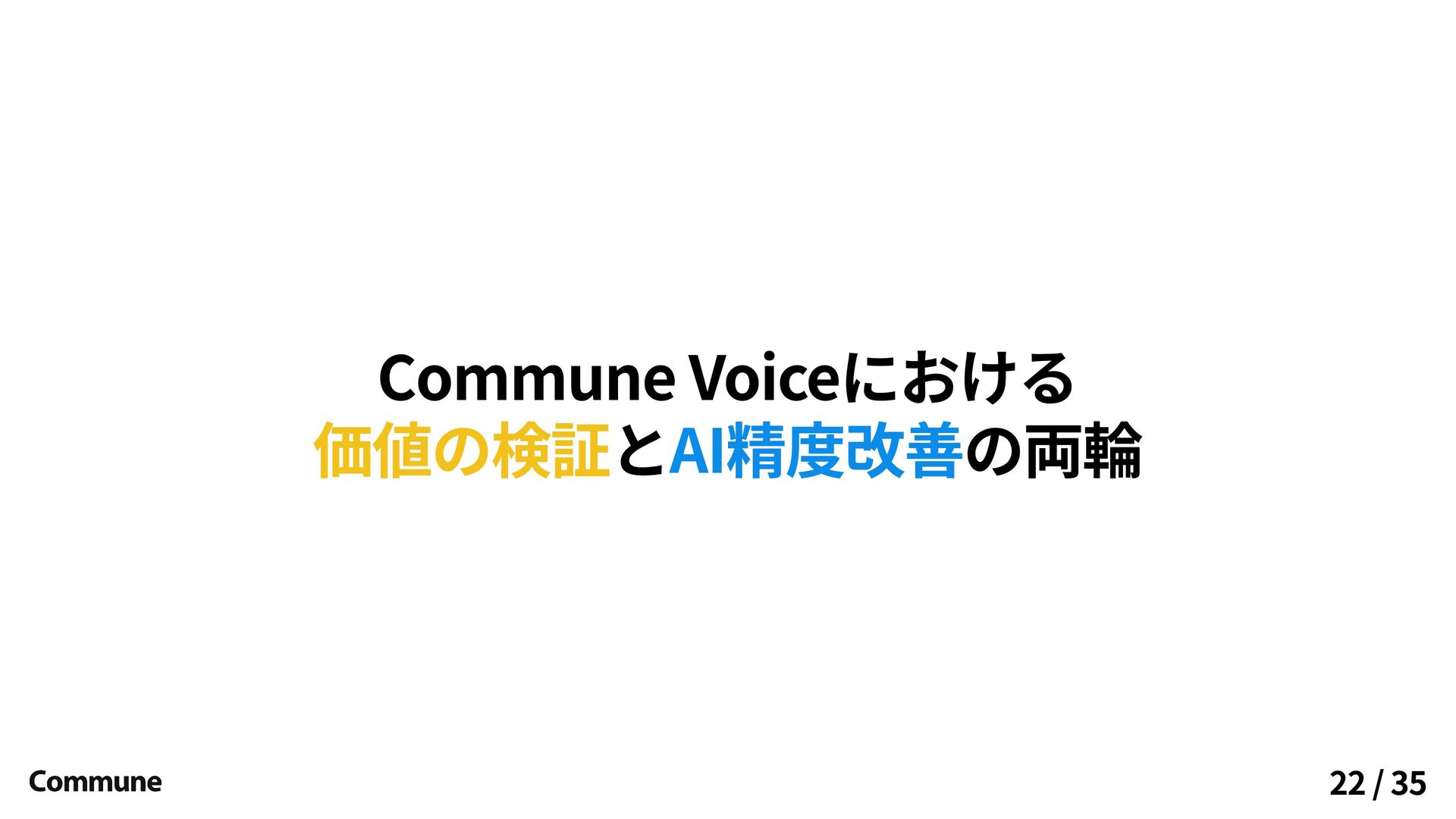 Commune Voiceにおける と の両輪 価値の検証 AI精度改善 22 / 35