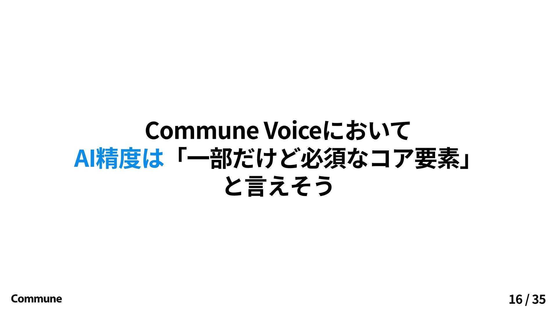 Commune Voiceにおいて 「一部だけど必須なコア要素」 と言えそう AI精度は 16 / 35