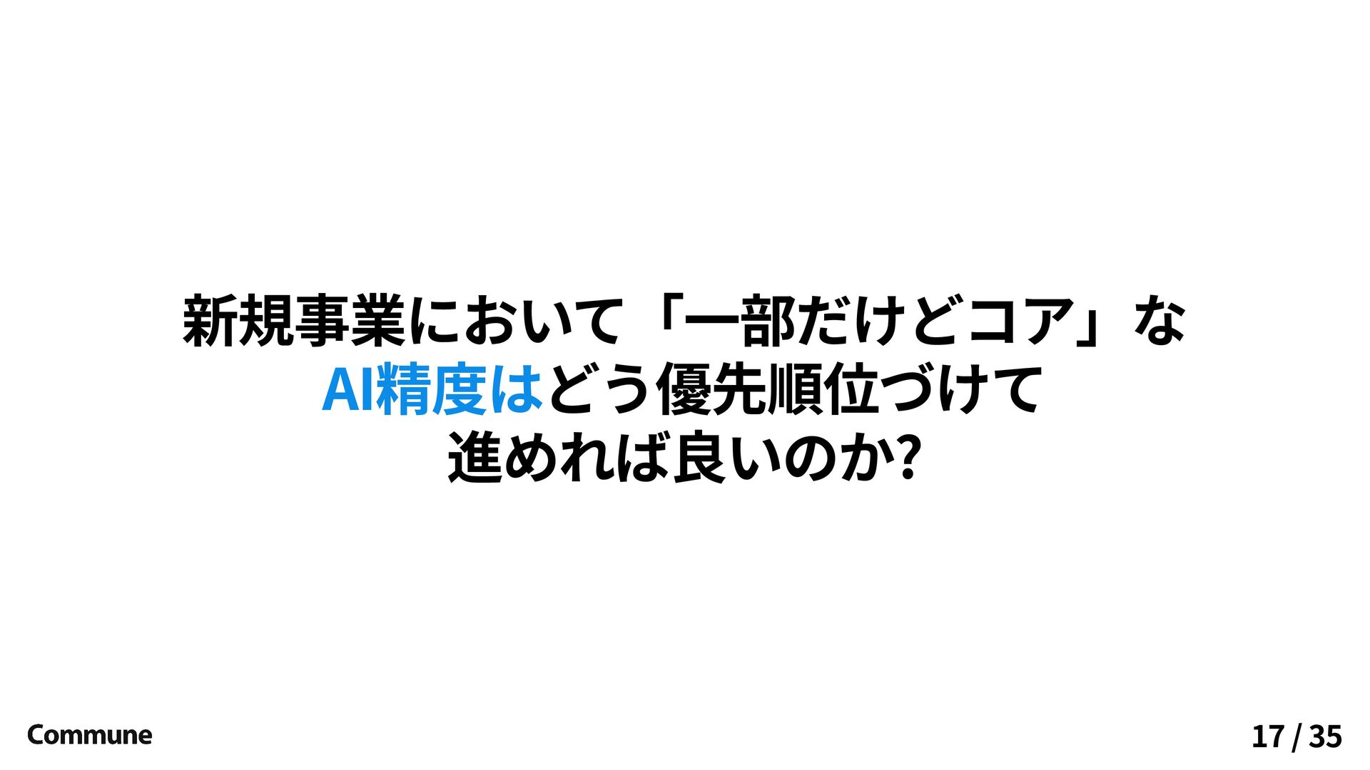 新規事業において「一部だけどコア」な どう優先順位づけて 進めれば良いのか? AI精度は 17 / 35
