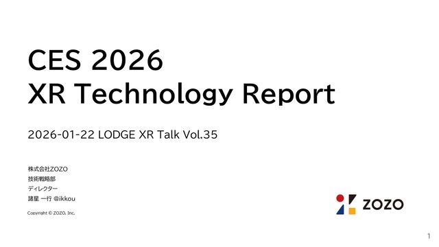 2026/01/22 に LODGE XR Talk Vol.35 の CES 2026 報告会パートで発表した登壇資料です。