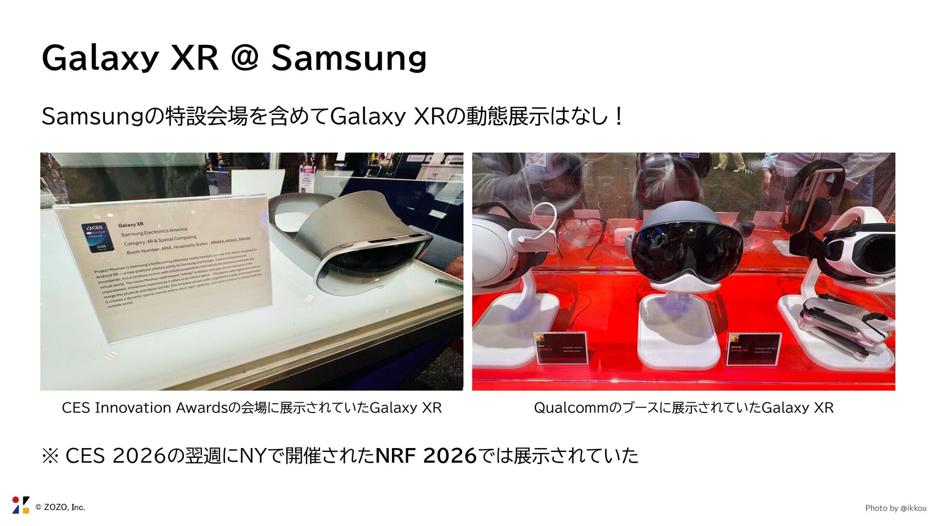 CES 2026の翌週にNYで開催されたNRF 2026では展示されていた CES Innovation Awardsの会場に展示されていたGalaxy XR Qualcommのブースに展示されていたGalaxy XR Photo by @ikkou