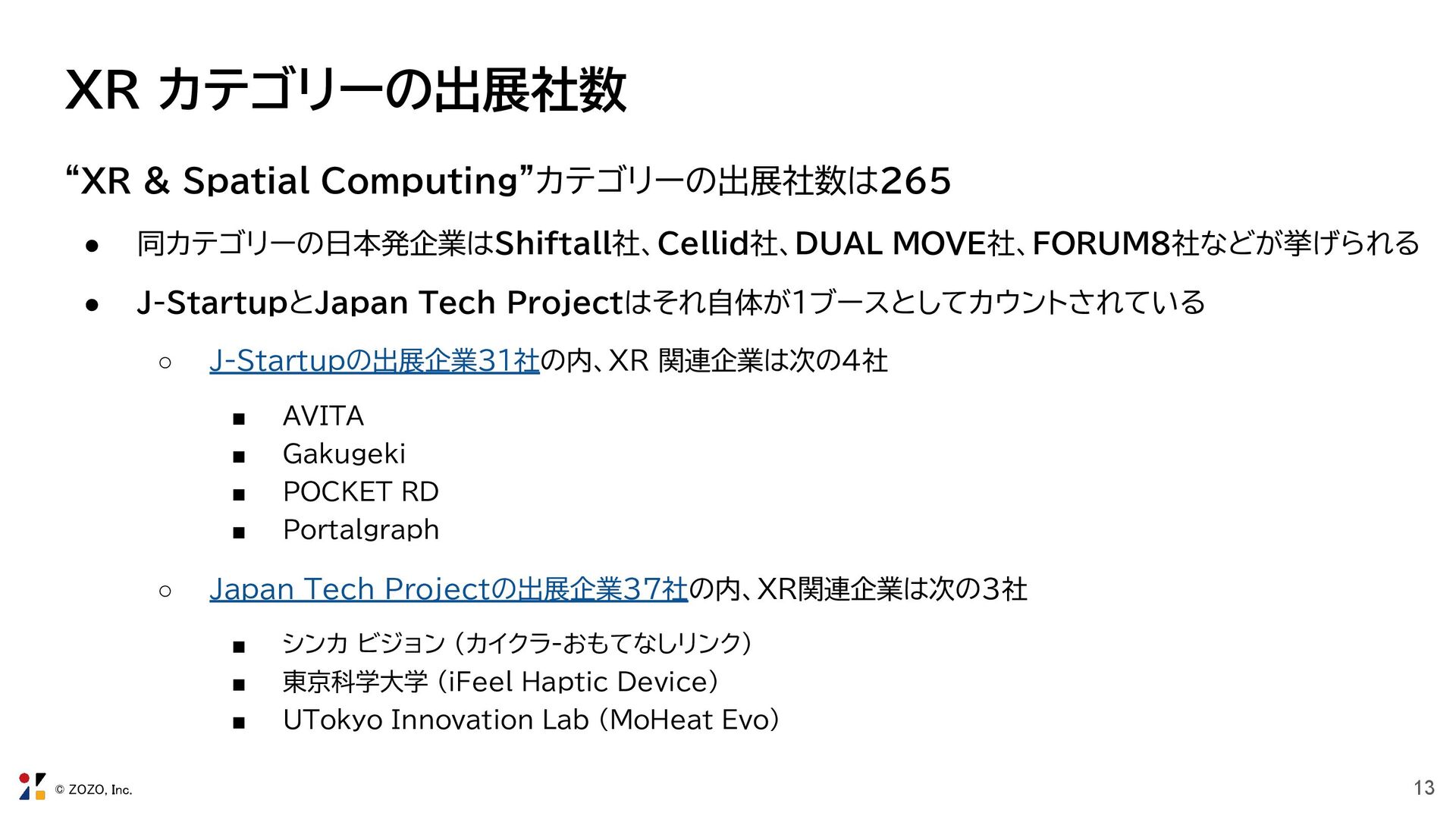 8. © ZOZO, Inc. 13 XR カテゴリーの出展社数 “XR & Spatial Computing”カテゴリーの出展社数は265