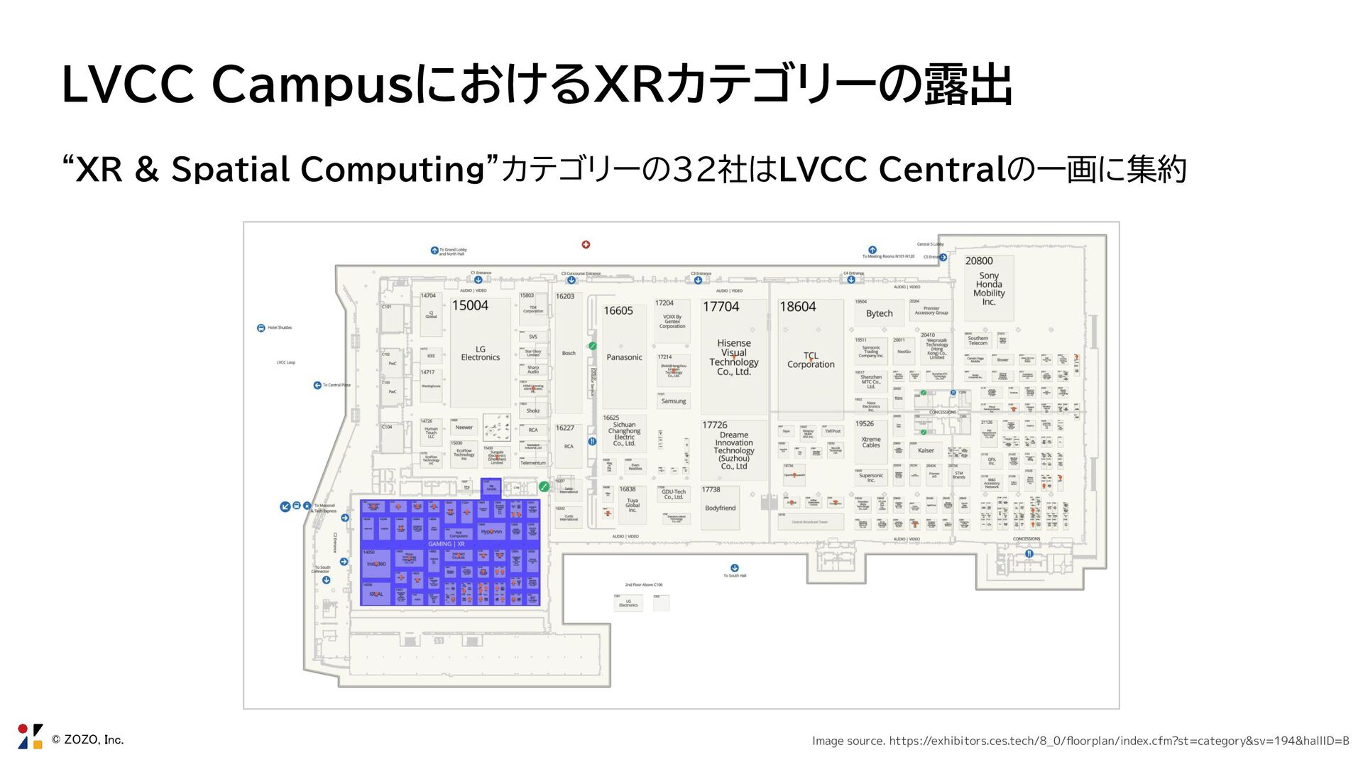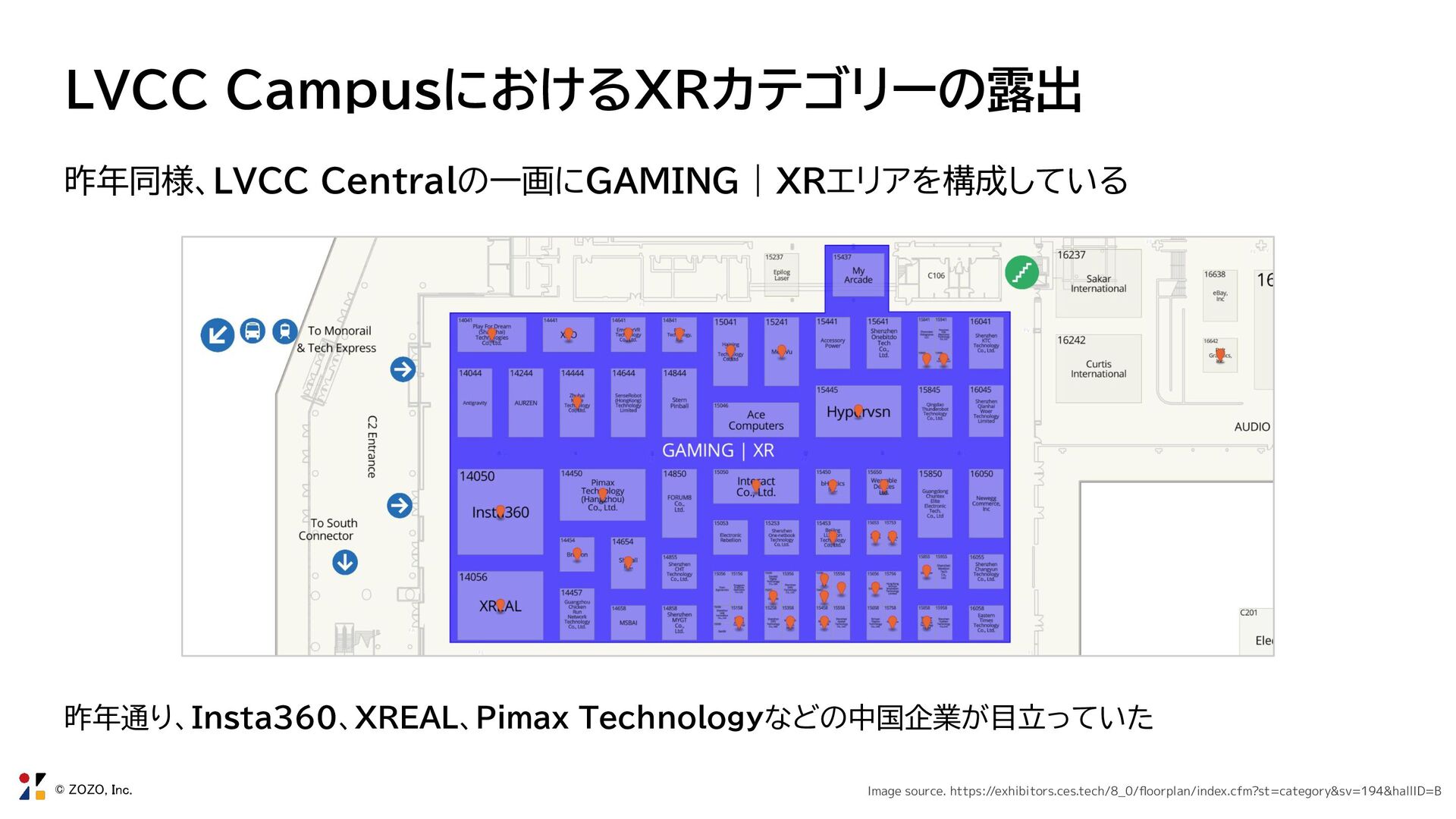 9. © ZOZO, Inc. LVCC CampusにおけるXRカテゴリーの露出 昨年同様、LVCC Centralの一画にGAMING | XRエリアを構成している 昨年通り、Insta360、XREAL、Pimax