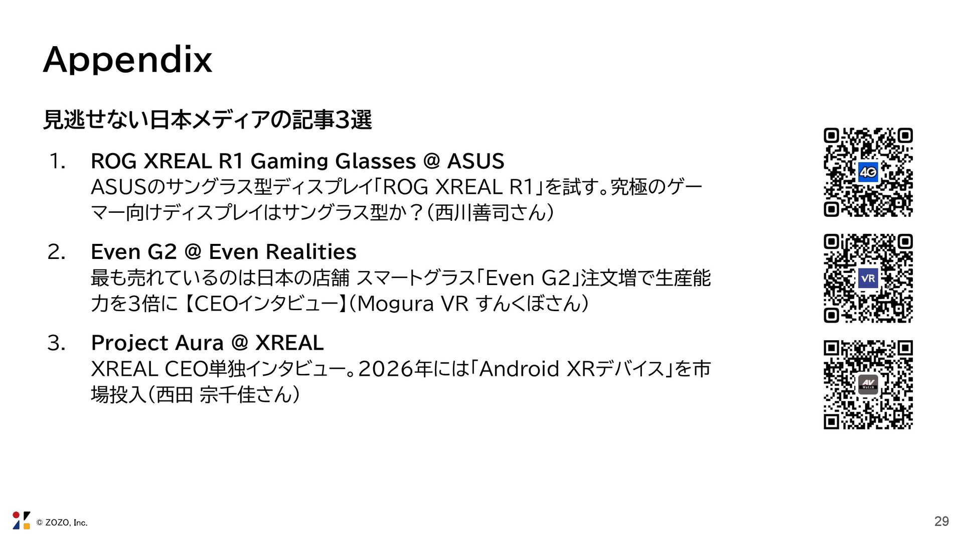 17. © ZOZO, Inc. 29 Appendix 見逃せない日本メディアの記事3選 1. ROG XREAL R1