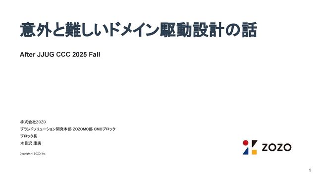 1. © ZOZO, Inc. 株式会社ZOZO ブランドソリューション開発本部 ZOZOMO部 OMOブロック ブロック長 木目沢 康廣