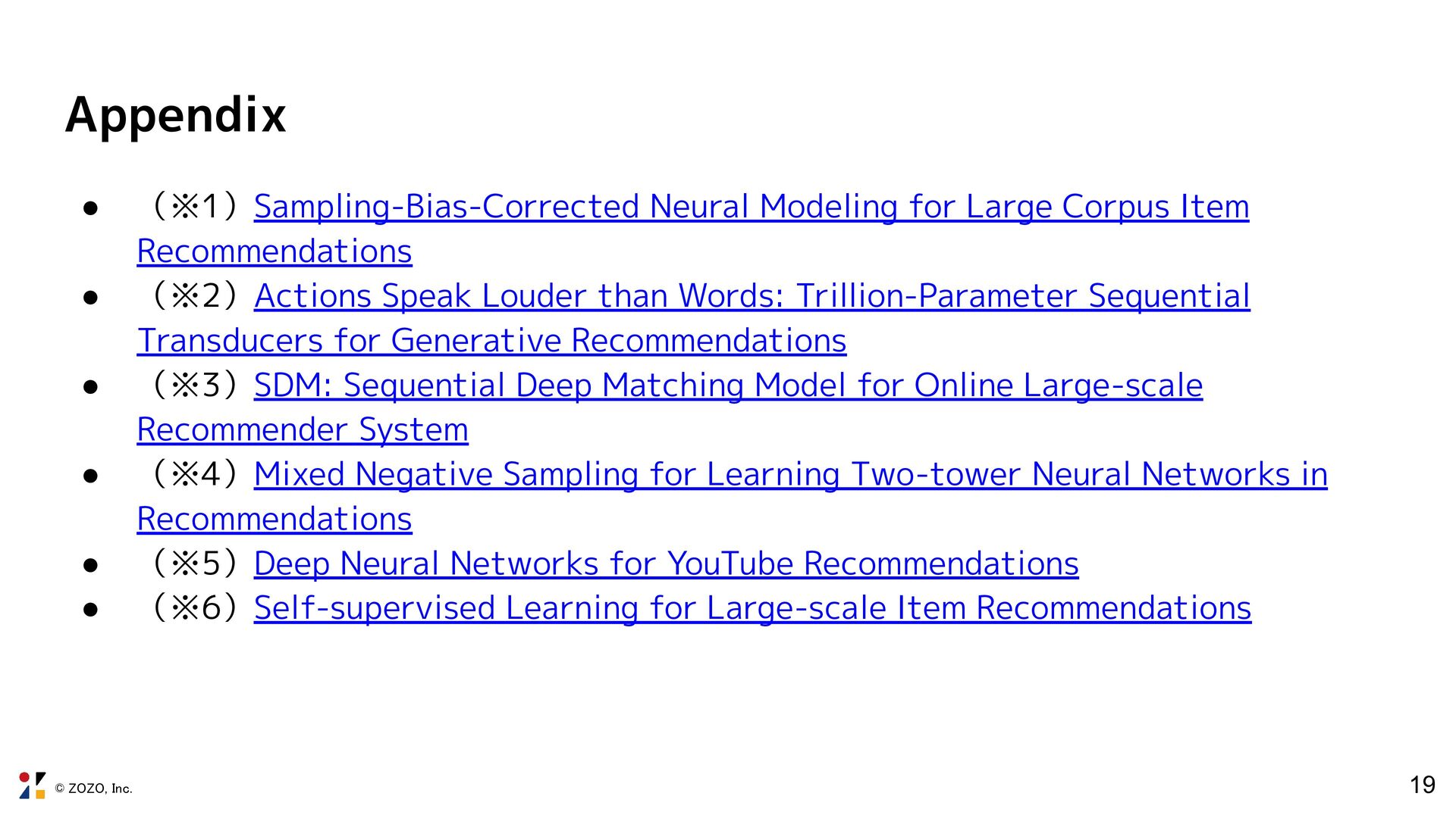 Large Corpus Item Recommendations • (※2)Actions Speak Louder than Words: Trillion-Parameter Sequential Transducers for Generative Recommendations • (※3)SDM: Sequential Deep Matching Model for Online Large-scale Recommender System • (※4)Mixed Negative Sampling for Learning Two-tower Neural Networks in Recommendations • (※5)Deep Neural Networks for YouTube Recommendations • (※6)Self-supervised Learning for Large-scale Item Recommendations