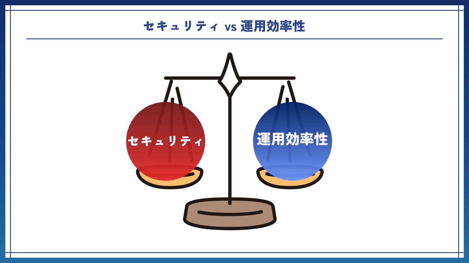 セキュリティ vs 運用効率性 セキュリティ 運用効率性