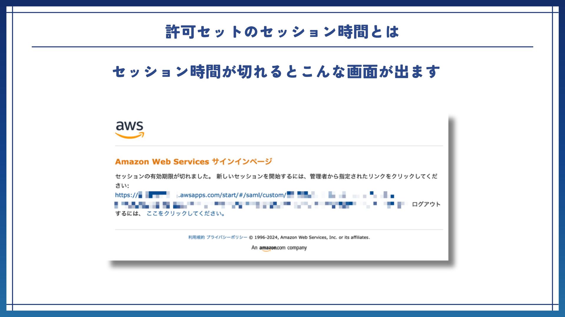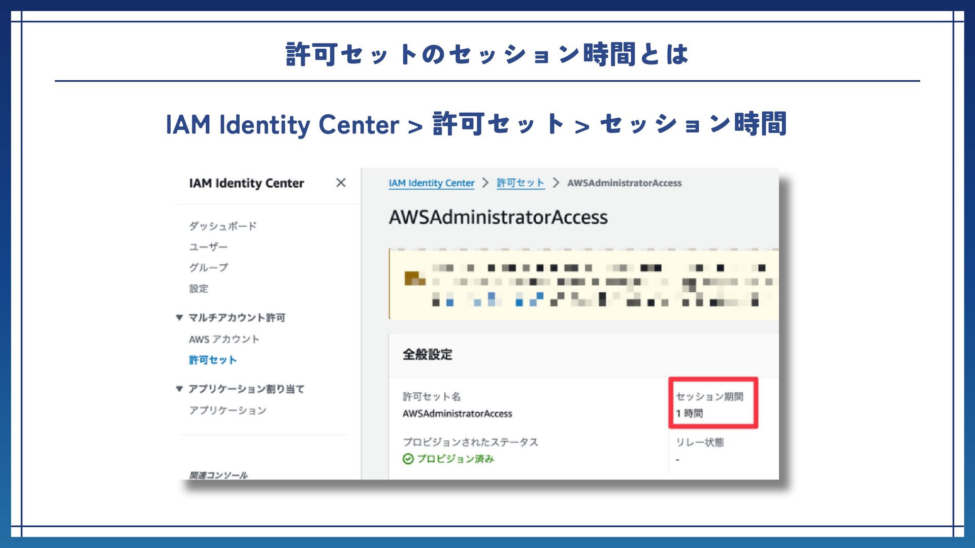 許可セットのセッション時間とは IAM Identity Center > 許可セット > セッション時間
