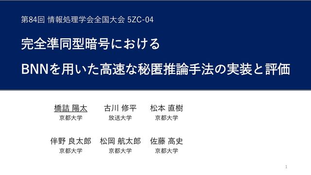 6 10 15 0 1 2 3 4 1 5 6 28 • メリット1:並列な実行の余地 同じ層の加算を完全に並列に実行できると仮定すると、 計算時間を項数𝑁に対し𝑂(𝑁)から𝑂(log 𝑁)へ改善できると期待される 5 9 6 21 6 22 7 28 7 13 0 1 逐次的な総和計算 Binary Adder Tree(BAT)による総和計算 全結合層の総和計算を高速化 [4] Fu, C., Huang, H., Chen, X. and Zhao, J.: GateNet: Bridg-ing the gap between Binarized Neural Network and FHE eval-uation,ICLR Workshop on Security and Safety in MachineLearning Systems(2021)