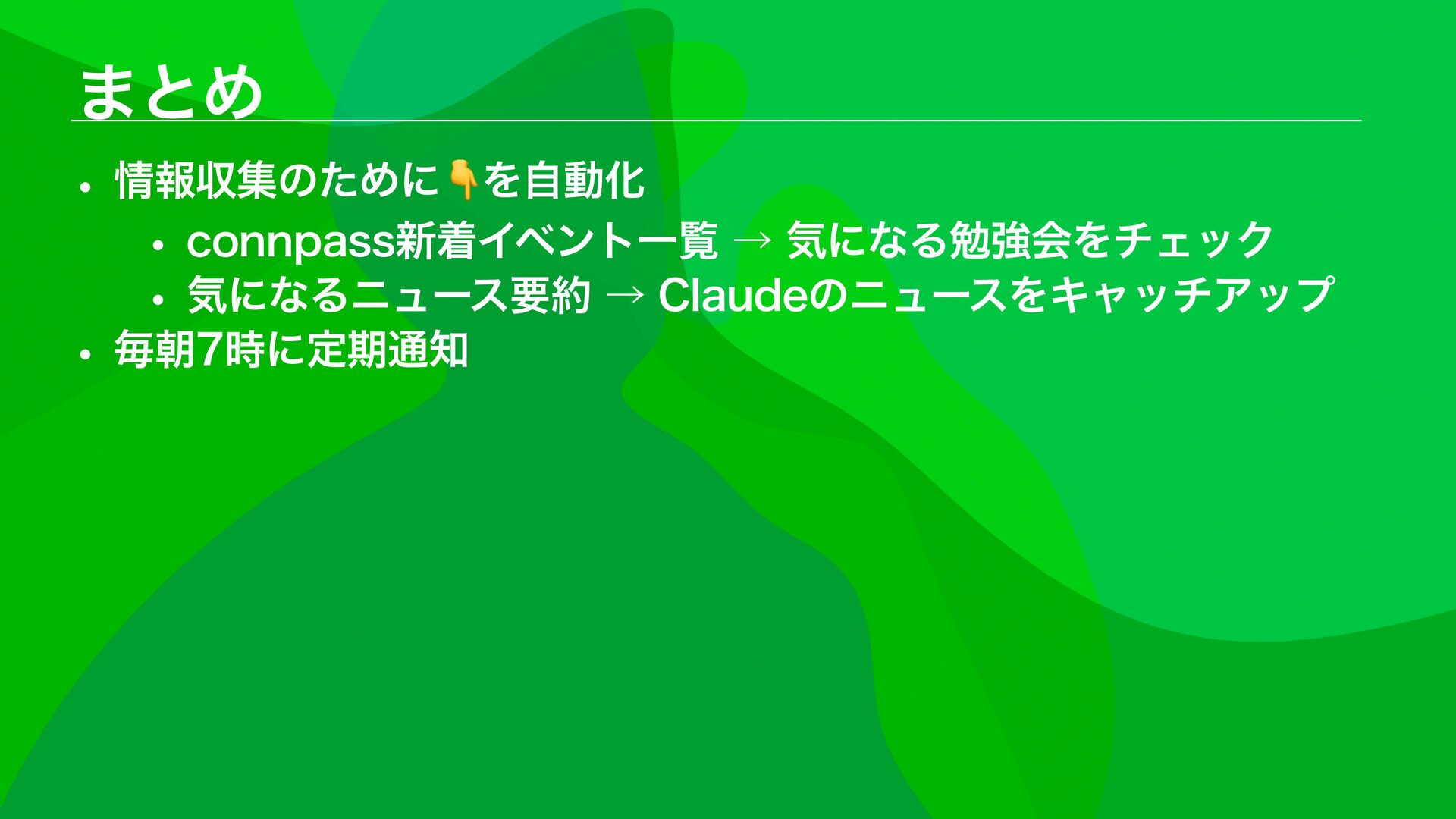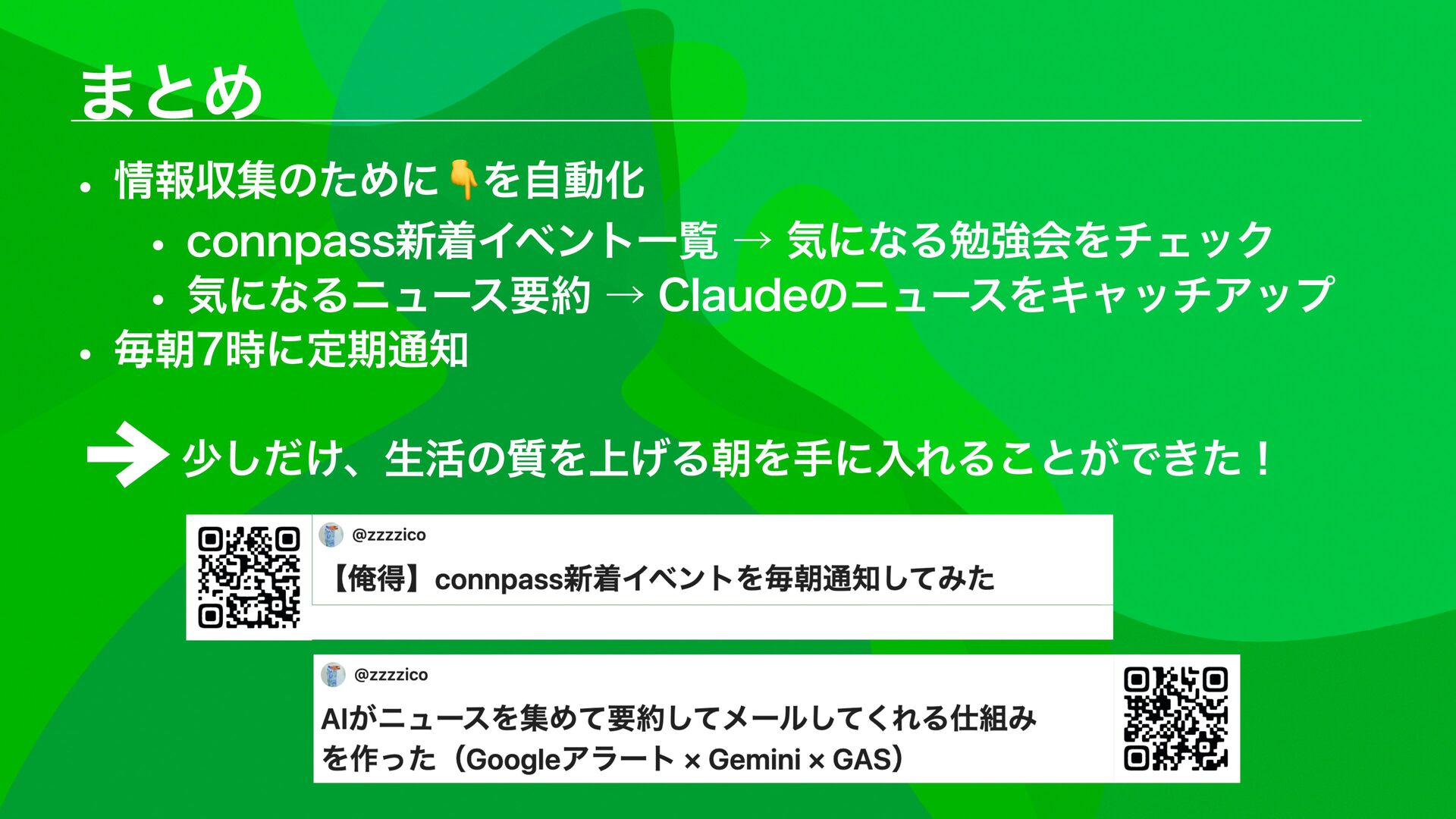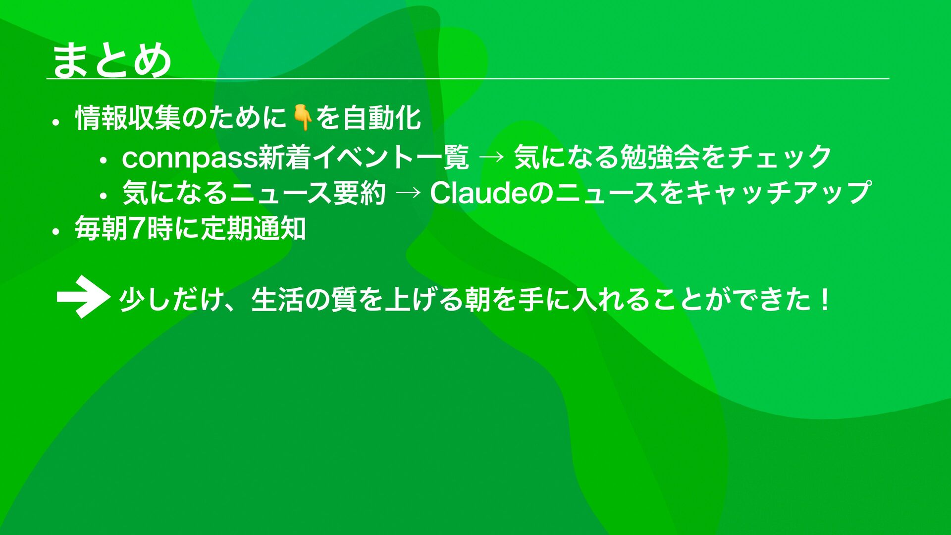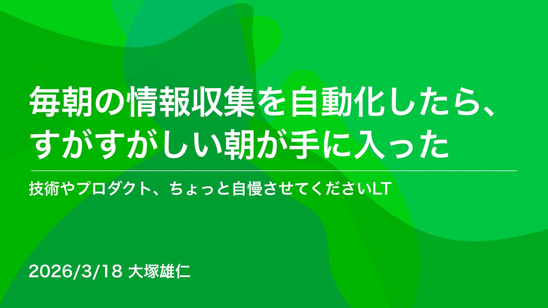 2026/3/18 技術やプロダクト、ちょっと自慢させてくださいLT 「毎朝の情報収集を自動化したら、すがすがしい朝が手に入った」