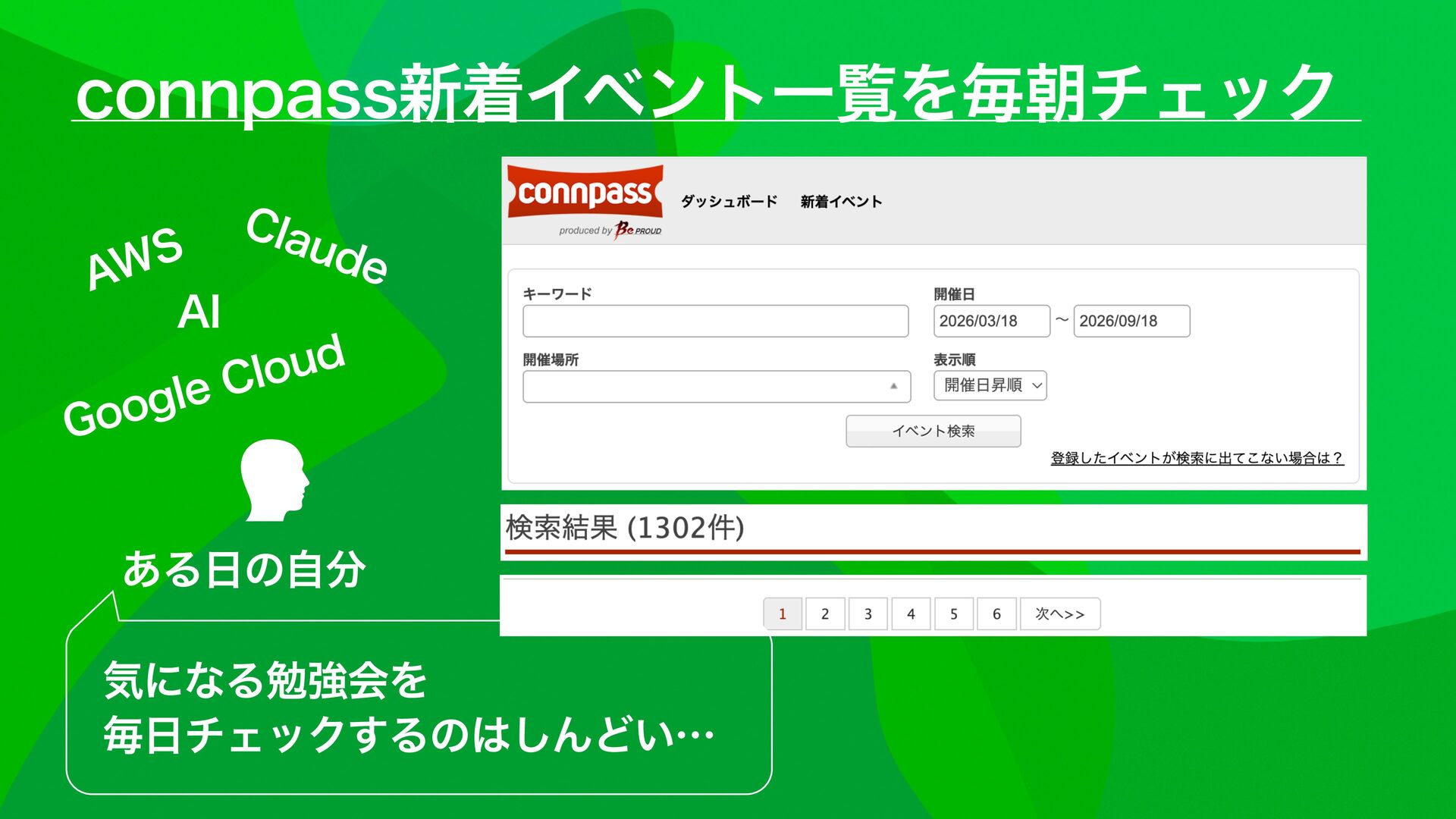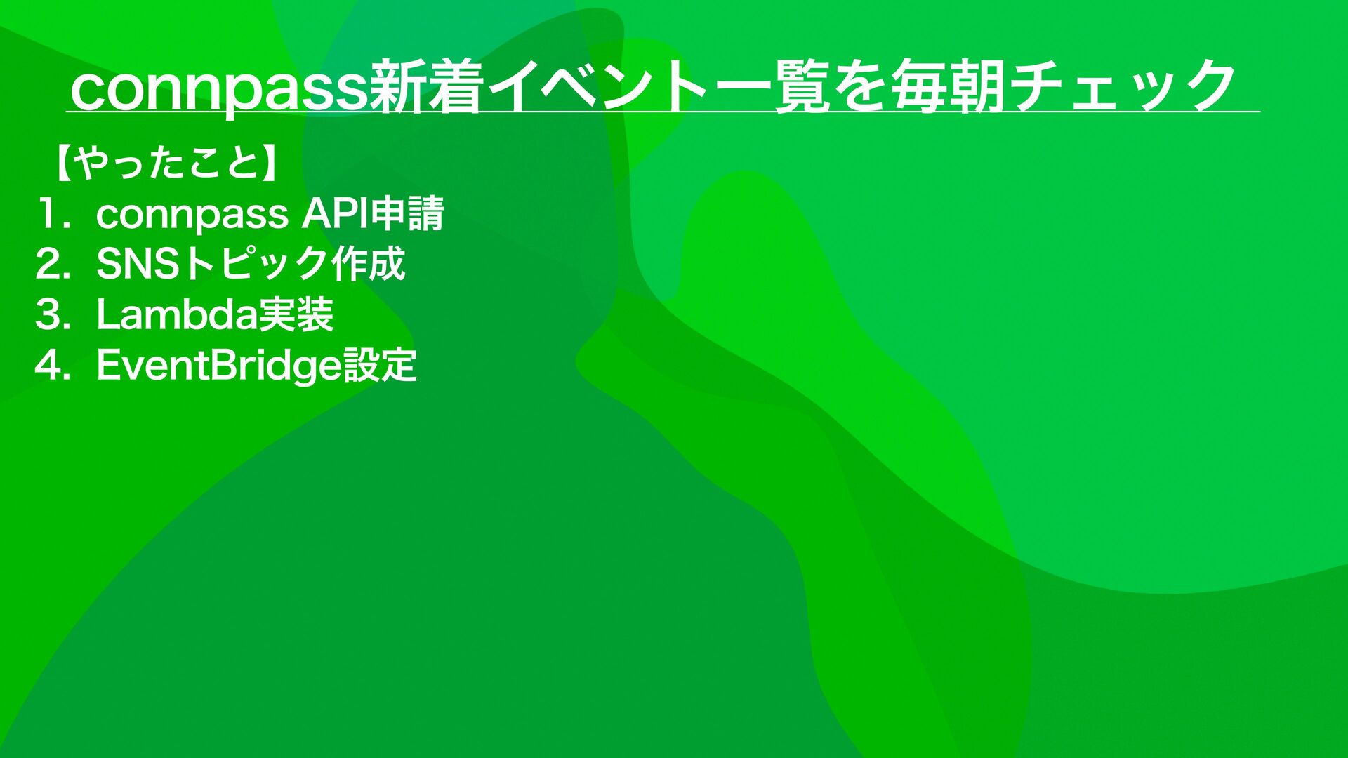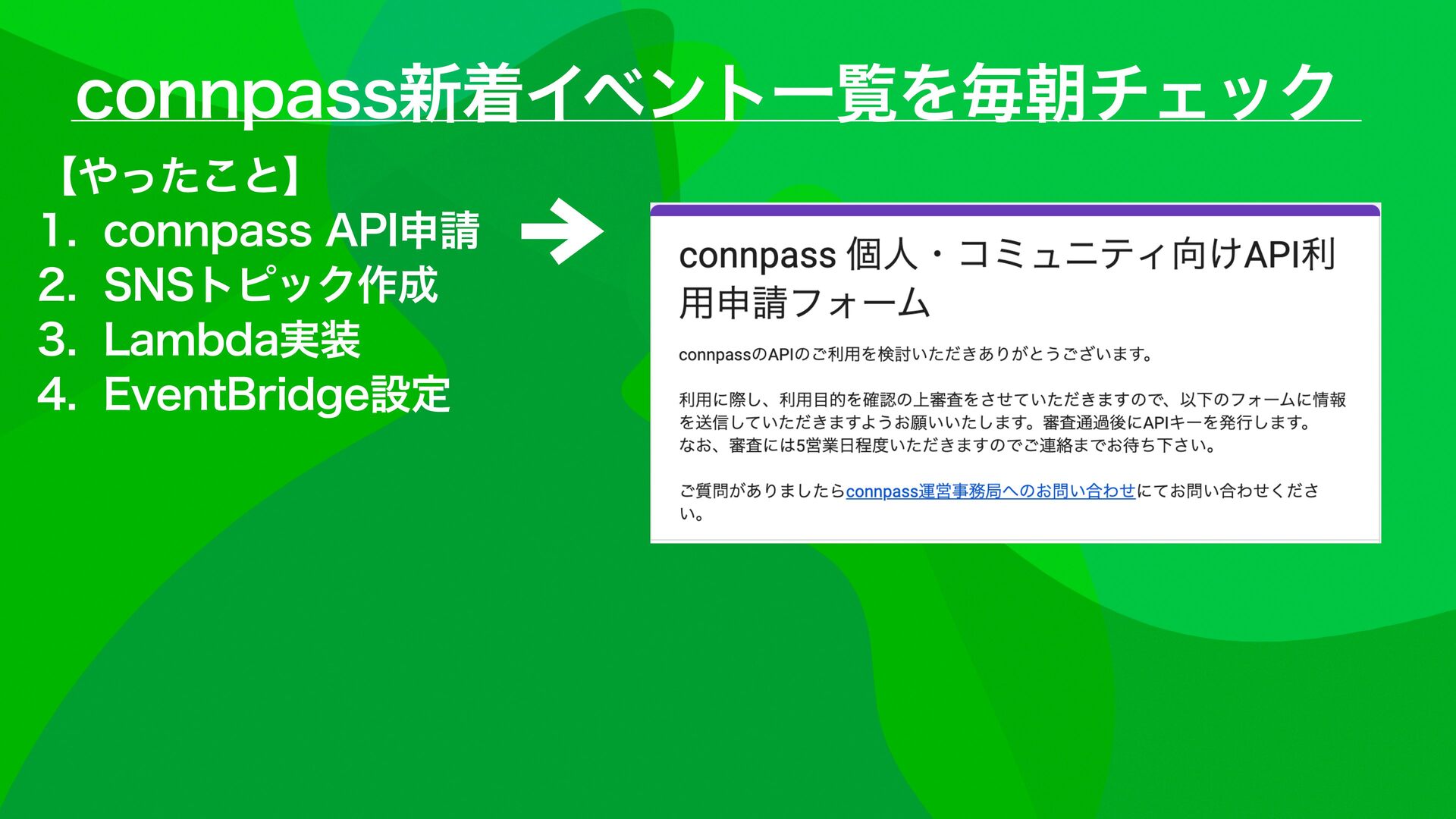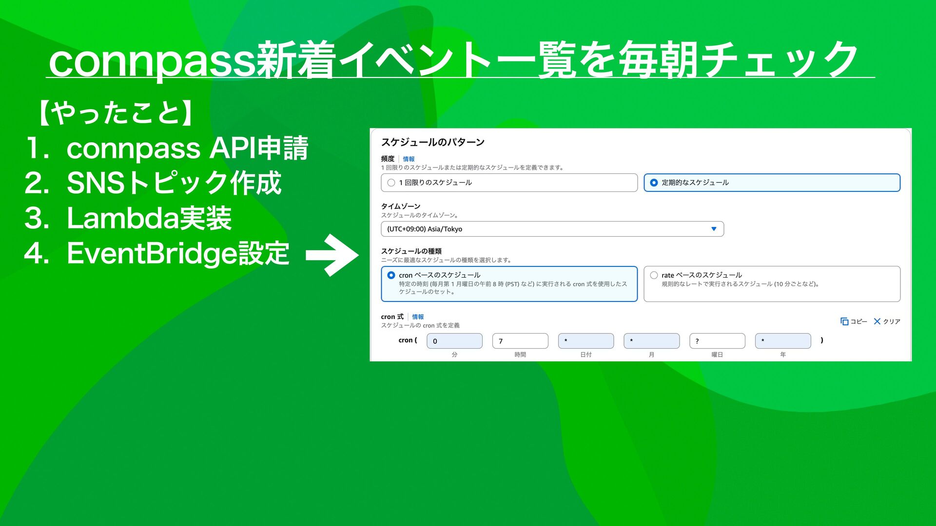 ·ͱΊ w ใऩूͷͨΊʹ👇ΛࣗಈԽ w DPOOQBTT৽ணΠϕϯτҰཡˠؾʹͳΔษڧձΛνΣοΫ w ؾʹͳΔχϡʔεཁˠ$MBVEFͷχϡʔεΛΩϟονΞοϓ w ຖே࣌ʹఆظ௨