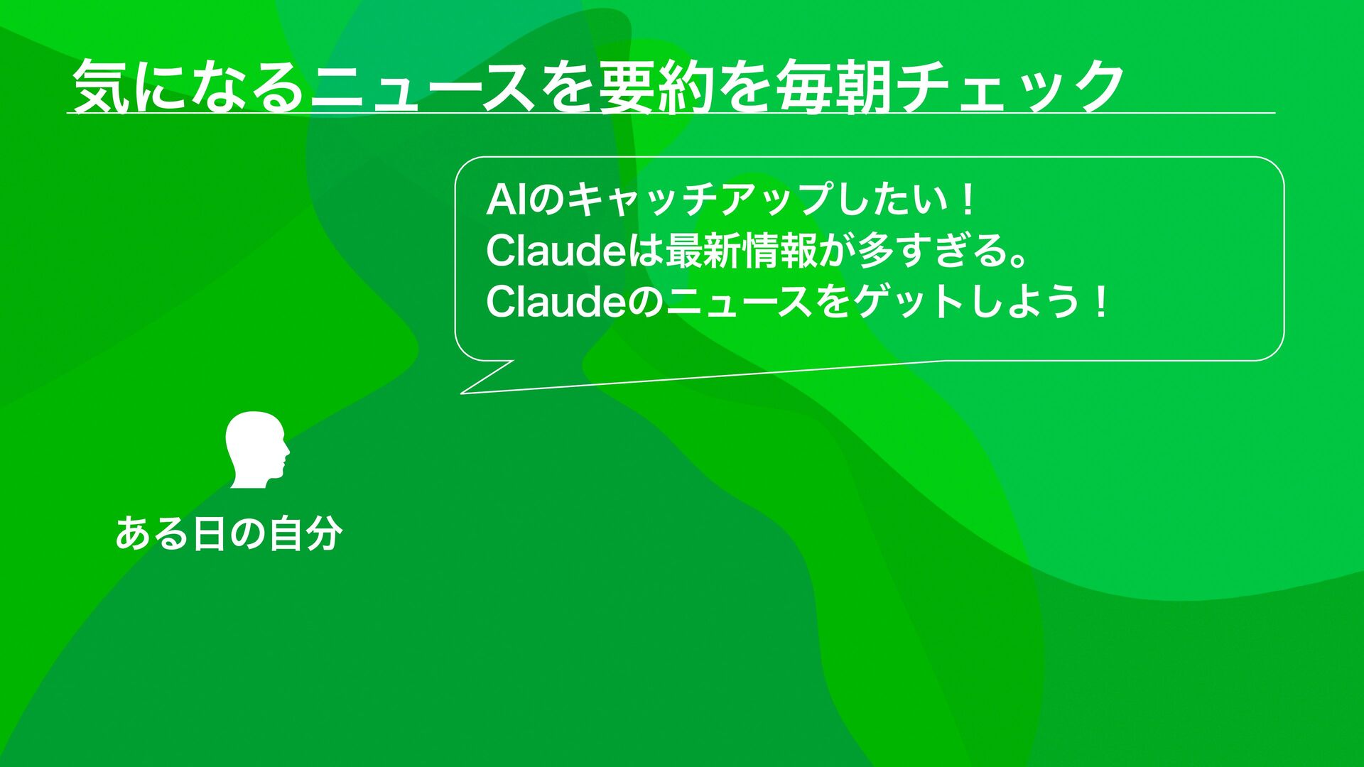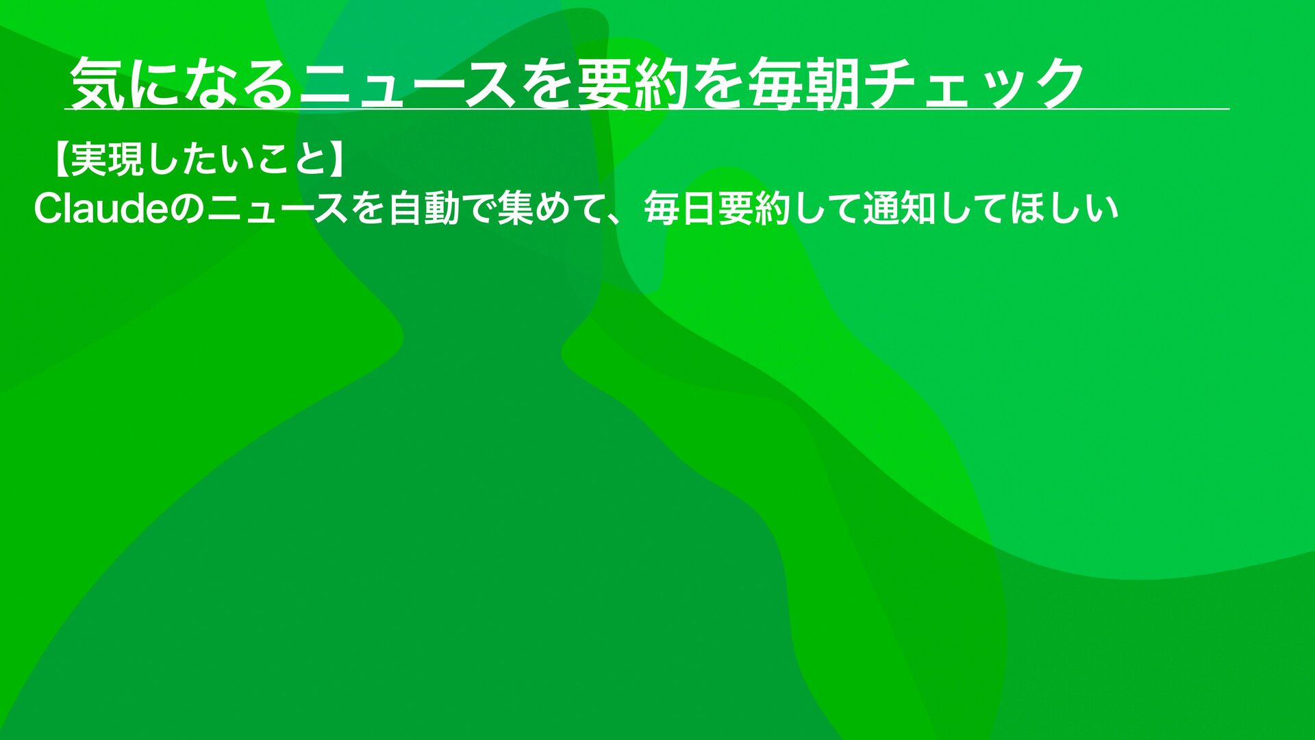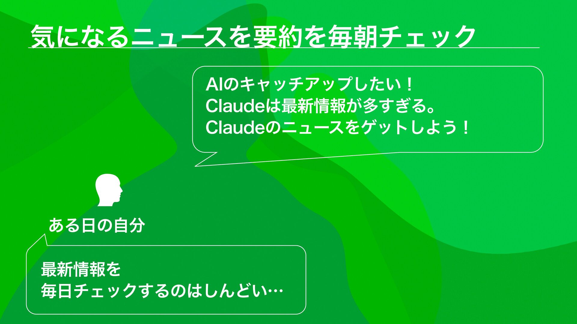 ؾʹͳΔχϡʔεΛཁΛຖேνΣοΫ ʲ࣮ݱ͍ͨ͜͠ͱʳ $MBVEFͷχϡʔεΛࣗಈͰूΊͯɺຖཁͯ͠௨ͯ͠΄͍͠
