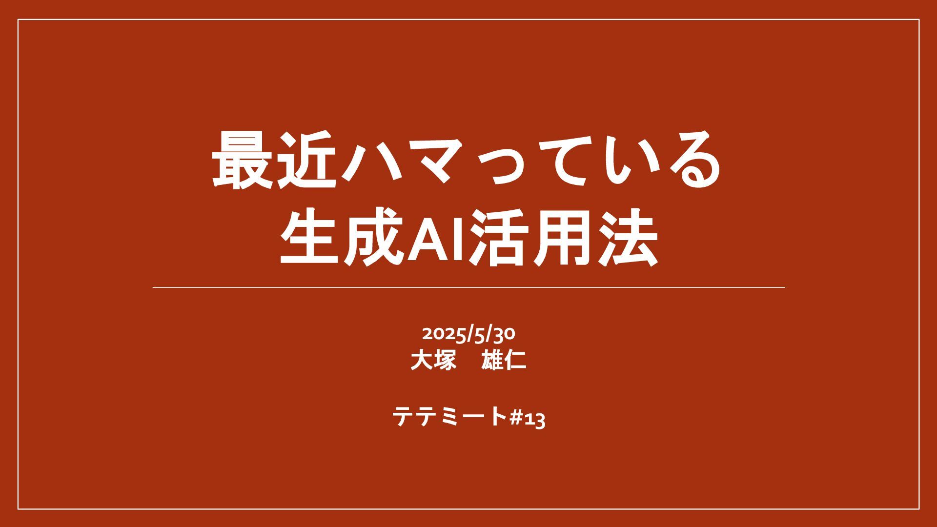 最近ハマっている 生成AI活用法 2025/5/30 大塚 雄仁 テテミート#13