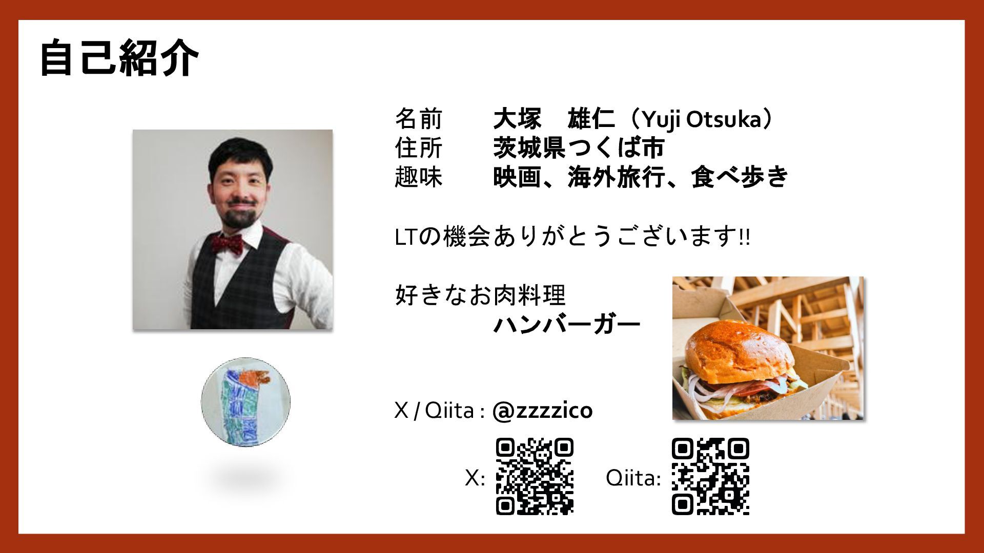 ハンバーガー X / Qiita : @zzzzico 自己紹介 X: Qiita: